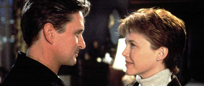 Michael Douglas is the lonely recently widowed Democrat US President, with a young daughter (Shawna Waldron), who falls for the beautiful lobbyist played by Annette Bening. In an election year, this becomes a big deal. The honest President is warned of possible consequences from this tricky romance by his loyal Chief of Staff (Martin Sheen), the pollster (David Paymer) and political aide (Michael J. Fox). It results in the President going down in the polls despite doing nothing wrong.