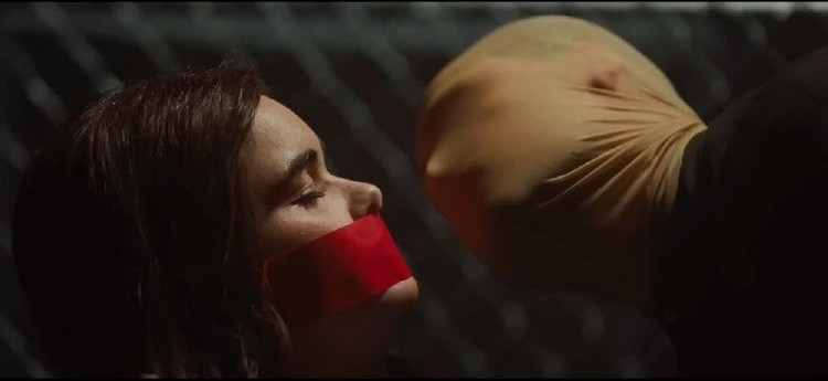 Margot acts as an amateur detective as she comes across videos of the grizzly killings from the serial killer Arthur (Dacre Montgomery), a cell phone store manager, who recreates the killings from the Arthur of the 1978 flick. She gets hold of the new Arthur’s videos, with him in red contact lenses and wearing a white stocking mask, as he imprisons several people in cages in his basement. Since her boss won’t let her call the cops, she acts on her own to track the serial killer down and gets into a dangerous situation with the killer.