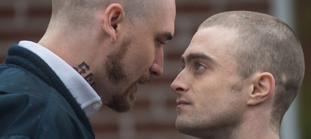Nate Foster (Daniel Radcliffe, the Brit actor is a former star in Harry Potter) is a scholarly, nerdy, young, newly hired desk-bound FBI agent who impresses the veteran agent in his Washington, D.C. office, Angela Zamparo (Toni Collette). She believes in his inter-personal skills after watching him question an African terrorist in the office and talks him into going undercover inside a domestic white supremacist group to make the connections needed to avert a likely upcoming terrorist attack. She has info that the right-wing hate groups who are determined to take “America back” for the white people from the Jews, African-Americans, and non-whites are about to do something radical for their cause–which might be to use a dirty bomb on a public target like the one used by Timothy McVeigh in bombing a federal building in Oklahoma City in 1995.