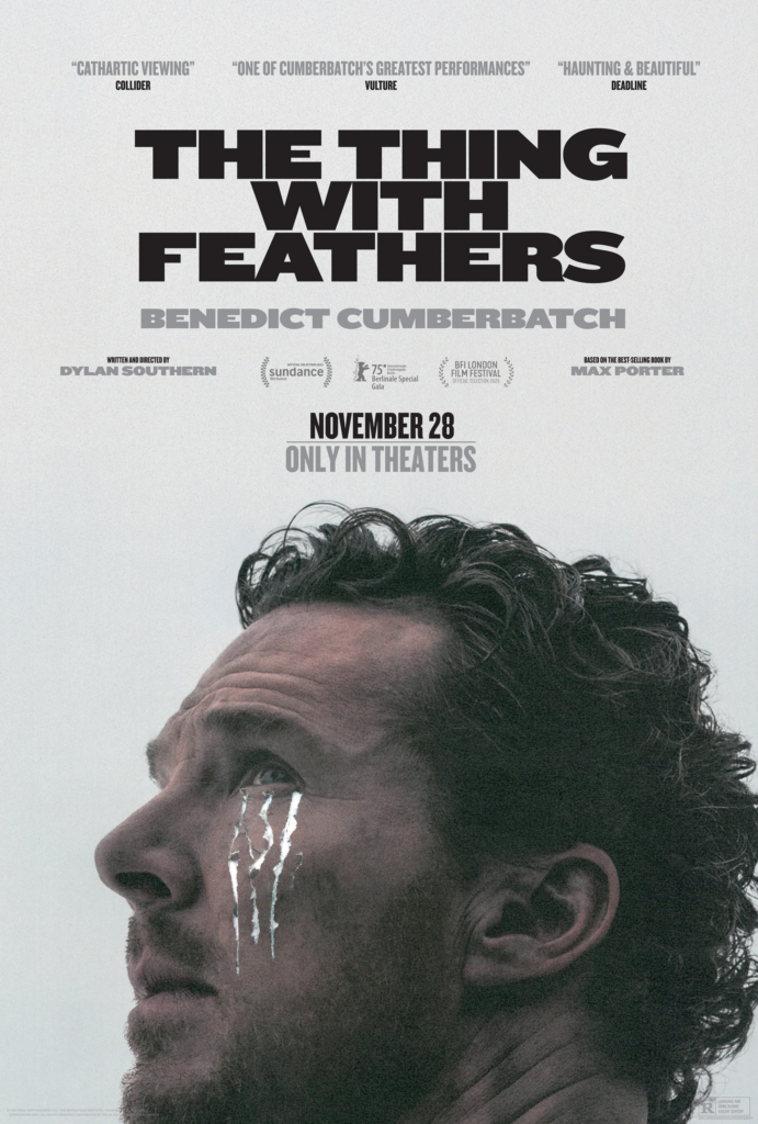 (director/writer: Dylan Southern; screenwriter: based on the novella Brief is the Thing with Feathers by Max Porter; cinematographer: Ben Fordesman; editor: George Cragg; music: Zebedee Budworth; cast: Benedict Cumberbatch (Dad), Henry Boxall (young boy), Richard Boxall (young boy), David Thewlis (voice of Crow), Eric Lampaert (Crow), Vinette Robinson (Amanda), Sam Spruell (Paul), Lesley Molony (Margaret, wife’s mother); Runtime: 98; MPAA Rating: R; producers: Adam Ackland, Leah Clarke, Andrea Cornwell; Lobo Films/Briarcliff Entertainment; 2025-UK)